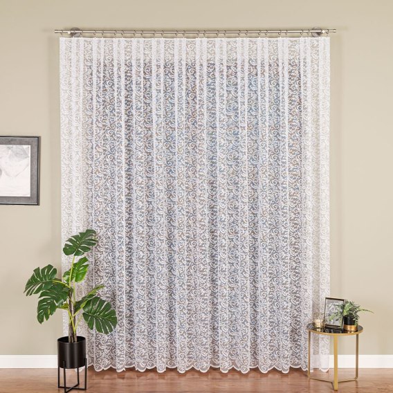 Firanka żakardowa 022701 jest odporna na odkształcenia i blaknięcie. Można ją prać w niskiej temperaturze, a po rozwieszeniu szybko schnie i nie wymaga prasowania. Tkanina elegancko układa się na karniszu, tworząc naturalne i estetyczne fale.