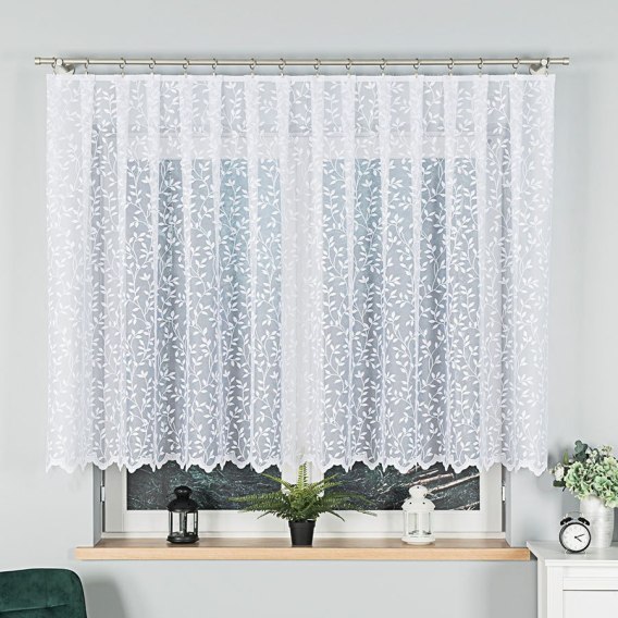 Firana 023058 to element dekoracyjny pasujący do każdego wnętrza. Lekka struktura zapewnia odpowiedni przepływ światła, tworząc przyjemny klimat i jednocześnie chroniąc prywatność. Doskonale prezentuje się zarówno z zasłonami, jak i samodzielnie jako delikatna dekoracja okna. Idealne zastosowanie znajduje w: