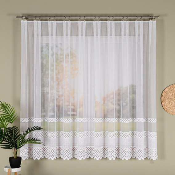 Firanka żakardowa na metry 107627 to trwała, elegancka i uniwersalna dekoracja okienna, która wprowadzi do wnętrza lekkość, jasność i klasyczny styl.