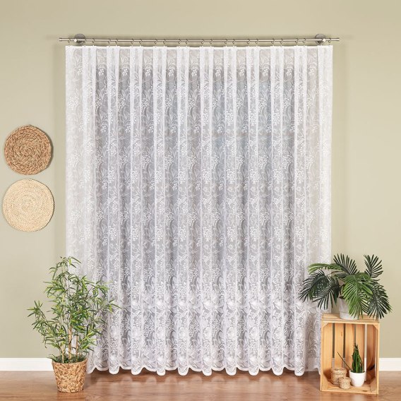 Firanka żakardowa na metry 137506 to trwała, elegancka i uniwersalna dekoracja okienna, która wprowadzi do wnętrza lekkość, jasność i klasyczny styl.