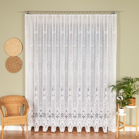 Firanka 361090 prezentuje się efektownie zarówno jako samodzielna dekoracja, jak i w zestawieniu z zasłonami lub roletami, tworząc harmonijną i stylową oprawę okna.