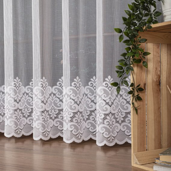 Firanka żakardowa ze wzorem na samym dole, wysokość 155cm, kolor 001 biały 015997/000/001/000155/1