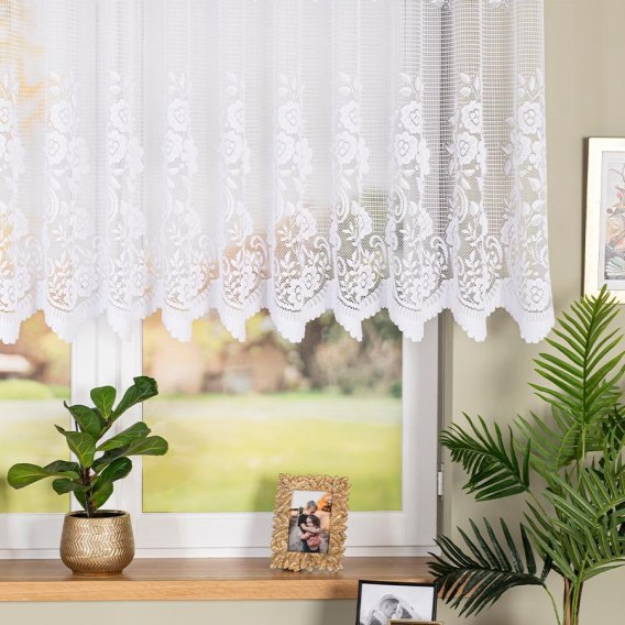 Firanka żakardowa ze wzorem pasowym, wysokość 120cm, kolor 001 biały 044330/000/001/000120/1