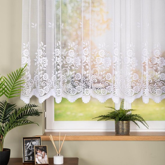 Firanka żakardowa ze wzorem pasowym, wysokość 140cm, kolor 001 biały 044330/000/001/000140/1