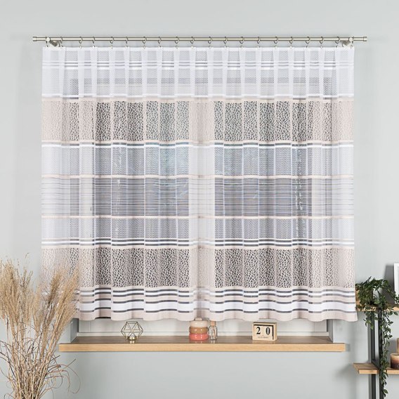 Firanka żakardowa ze wzorem pasowym, wysokość 150cm, kolor 027 stare złoto 017834/000/027/000150/1