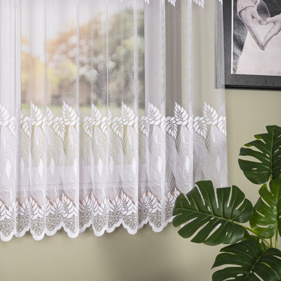Firanka żakardowa ze wzorem pasowym, wysokość 170cm, kolor 001 biały 049365/000/001/000170/1