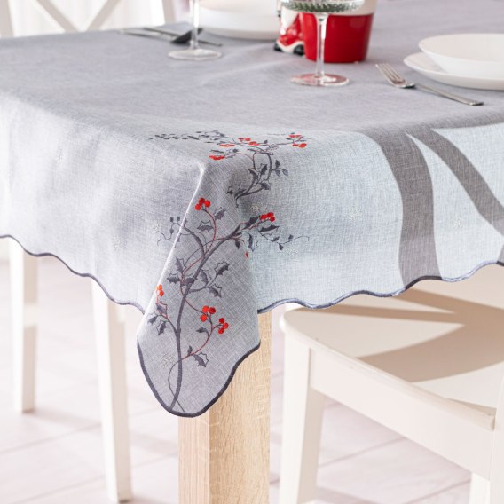 JARZĘBINOWY BLASK Obrus z haftem, szerokość 120cm x wysokość 160cm, kolor 007 szary 645310/KSP/007/120160/1