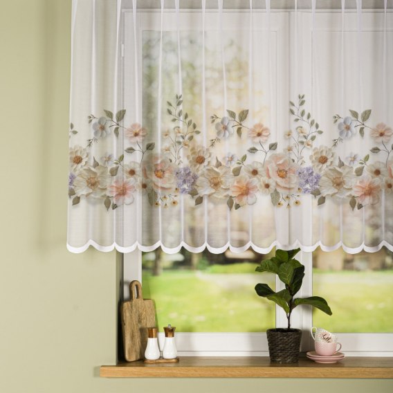 KWIATY Z EFEKTEM WYSZYWANIA Firanka żakardowa 023456, wysokość 120cm, kolor 001 biały D00178/000/001/000120/1