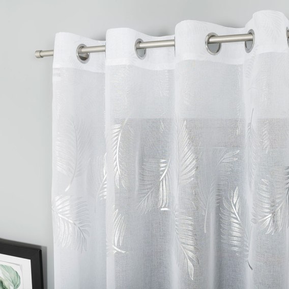 MARIETTA Firana gotowa na przelotkach z ołowianką, szerokość 140cm x wysokość 250cm, kolor 001 biały ze srebrnym zdobieniem 0002