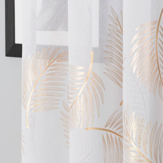 MARIETTA Firana gotowa na taśmie z ołowianką, szerokość 140cm x wysokość 250cm, kolor 004 biały ze złotym zdobieniem 000261/FGT