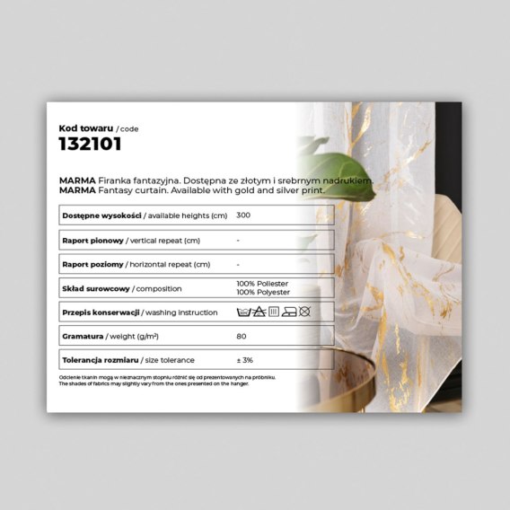 MARMA Próbnik firany fantazyjnej z oławianką , wysokość 300cm 132101/PRO/000/000300/1