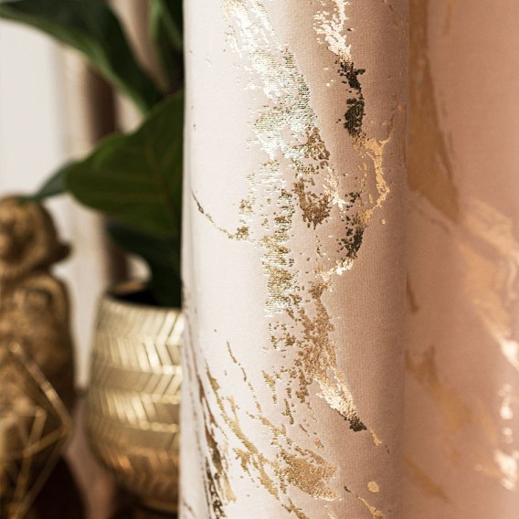 MARMA Zasłona gotowa na taśmie, szerokość 140cm x wysokość 250cm, kolor 003 jasny beżowy ze złotym nadrukiem na VELVI TD0033/ZGT