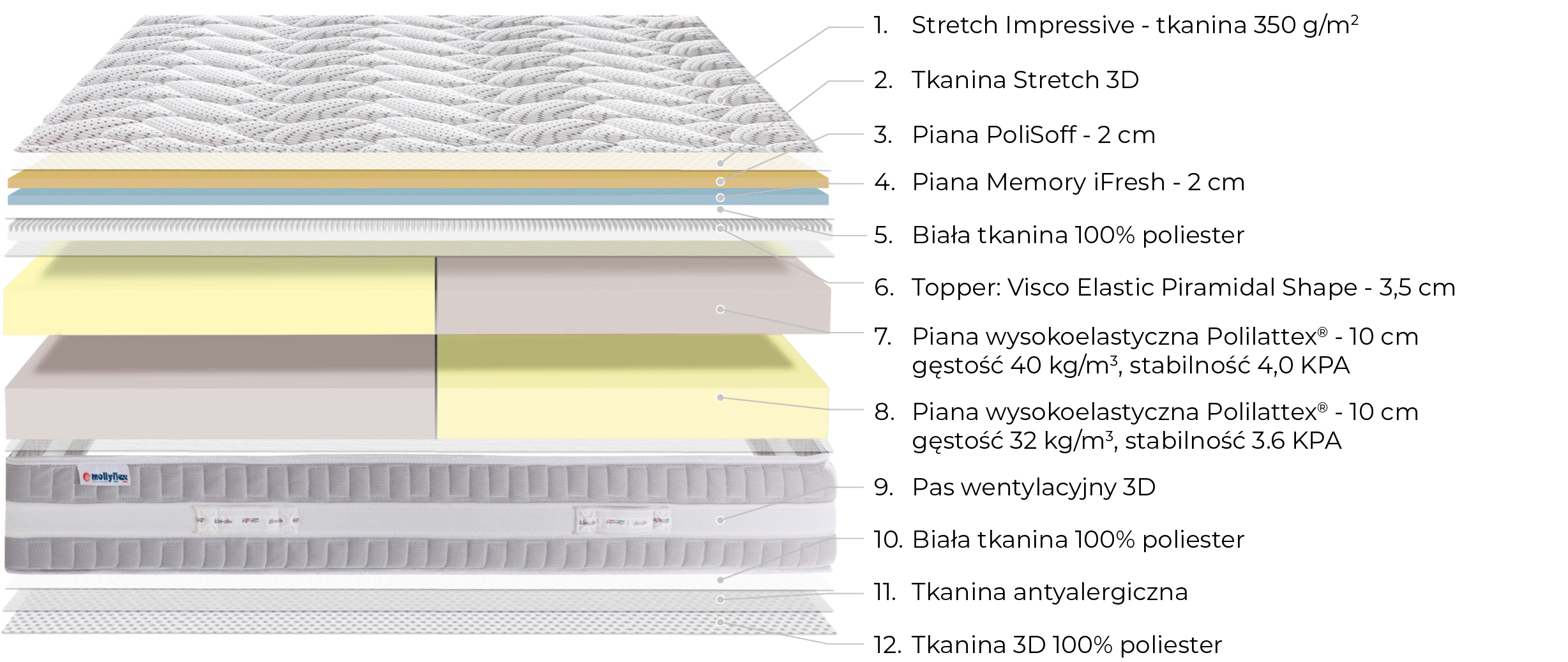 - Dotyczy wszystkich materacy, poduszek i akcesoriów sygnowanych logo Mollyflex.