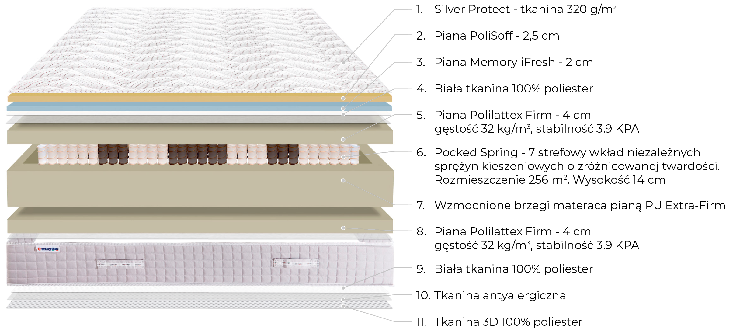 - Dotyczy wszystkich materacy, poduszek i akcesoriów sygnowanych logo Mollyflex.