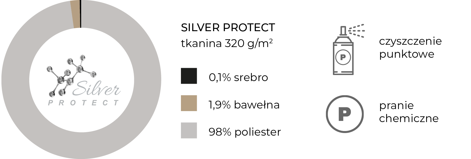 Pokrowiec materaca Silver Spring został wykonany z tkaniny Silver Protect z dodatkiem aktywnych jonów srebra. Technologia jonizacji skutecznie hamuje rozwój bakterii i drobnoustrojów, gwarantując czystość oraz długotrwałą higienę snu. Tkanina jest wytrzymała, odporna na rozciąganie i kurczenie podczas prania, dzięki czemu pokrowiec na długo zachowuje swoje właściwości i elegancki wygląd.