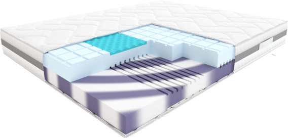 Wkład: po jednej stronie pianka wysokoelastyczna HR o wys. 11 cm z warstwą pianki FloFom w strefie ramion i barków, po drugiej stronie pianka wysokoelastyczna VelvetTouch o wys. 11cm z warstwą pianki Visco w strefie ramion i barków.