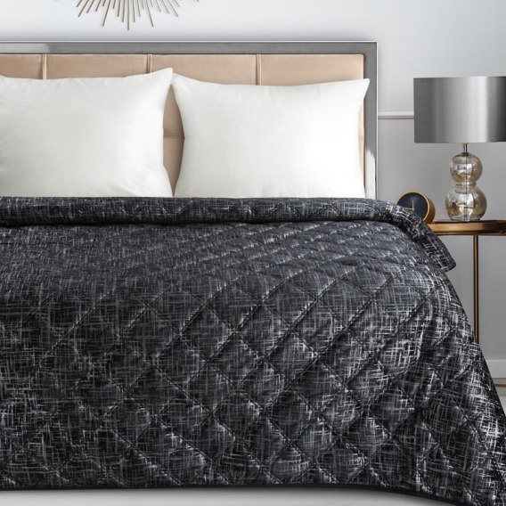 Narzuta welwetowa, wykonana techniką "hot press"z foliowym nadrukiem szerokość: 170 cm, długość: 210 cm, kolor: czarny, Gramatura: 210 GSM, Skład: 100% poliester
