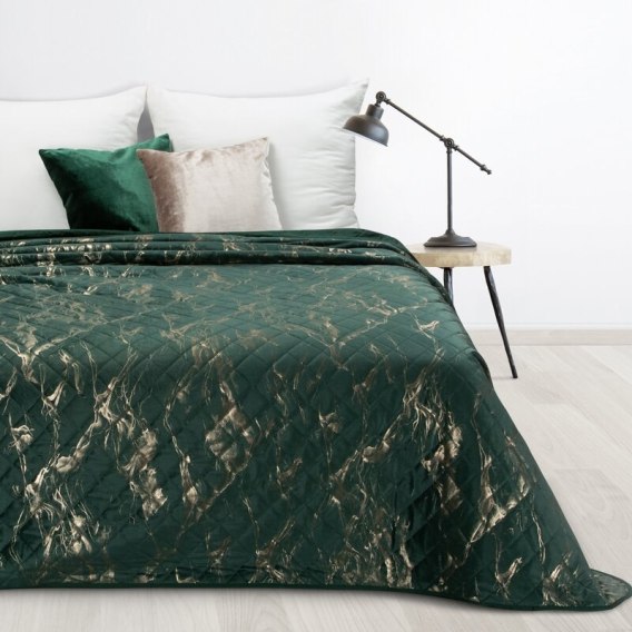 Przyjemna w dotyku narzuta pikowana metodą bezszwowego zgrzewania hotpress w subtelny wzór geometryczny. Sprawdzi się jako narzuta na łóżko lub sofę w salonie. szerokość: 200 cm, długość: 220 cm, kolor: ciemnozielony, Gramatura: 150+100+65 GSM, Skład: 100% poliester