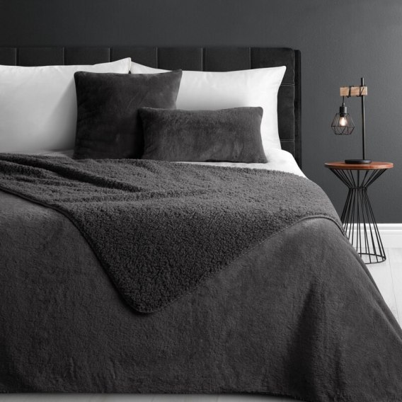 Futrzana narzuta szerokość: 170 cm, długość: 210 cm, kolor: stalowy, Gramatura: 430 GSM, Skład: 100% poliester