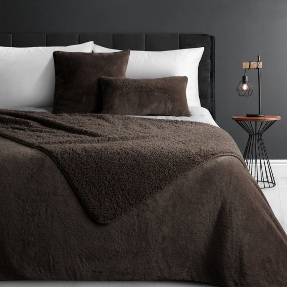 Futrzana narzuta szerokość: 220 cm, długość: 240 cm, kolor: ciemnobrązowy, Skład: 100% poliester