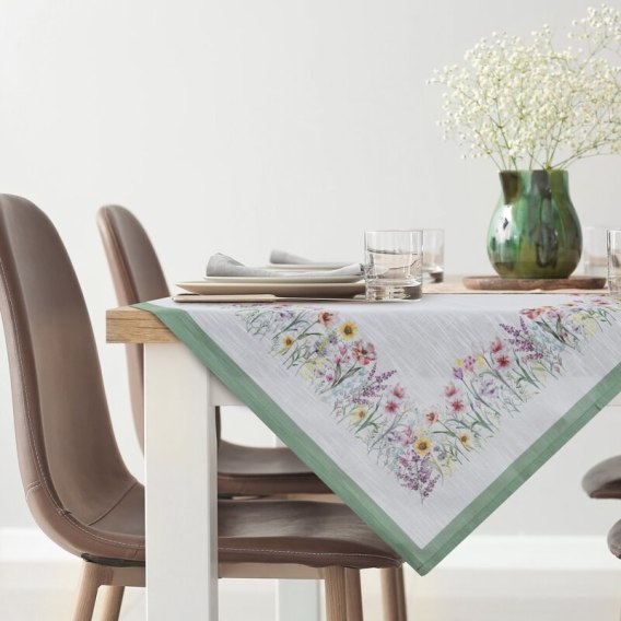 6. Zaleca się suszenie obrusu na płasko oraz poza obszarem padania promieni słonecznych, aby obrus nie wyblakł.