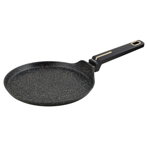 Dzięki solidnej konstrukcji z aluminium oraz nieprzywierającej powłoce typu „marble", patelnia równomiernie rozprowadza ciepło, a każdy naleśnik smaży się równo od brzegu po środek. Działa na wszystkich rodzajach kuchenek, w tym na indukcji, i nadaje się do mycia w zmywarce.