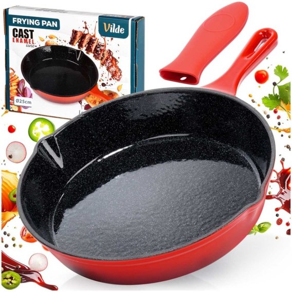 PATELNIA ŻELIWNA EMALIOWANA 25cm Z SILIKONOWĄ NAKŁADKĄ 199155