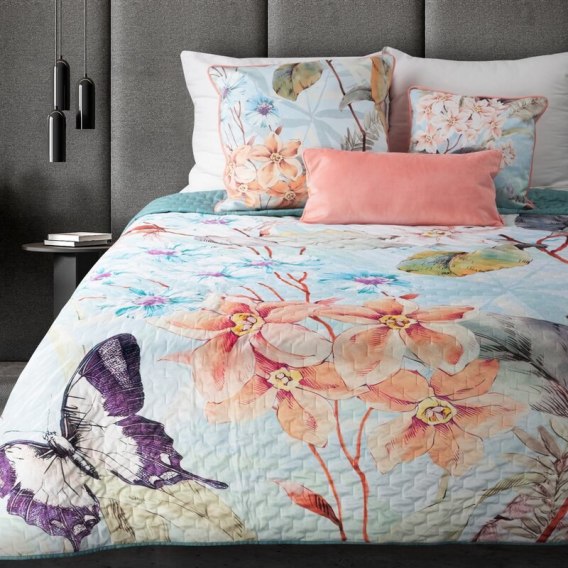 Narzuta welwetowa z nadrukiem, wykonana techniką "hot press" szerokość: 220 cm, długość: 240 cm, kolor: wielokolorowy, Gramatura: 250+120+70 GSM, Skład: 100% poliester