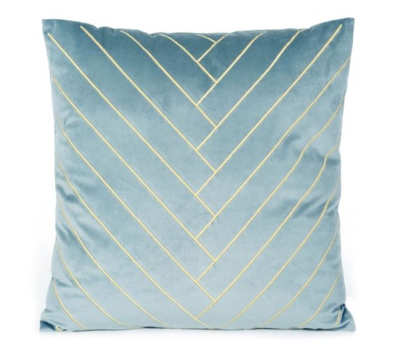 Dekoracyjna poduszka z firmy Eurofirany uszyta z welwetowej tkaniny, udekorowanej efektownym nadrukiem. Przeszywana złotą nicią ułożoną w geometryczny wzór, rozjaśni nawet najbardziej ponure pomieszczenie.Zapinana na zamek błyskawiczny, który ułatwi jej wypranie. ? Poszewka jest miękka i przyjemna w dotyku. Poduszki do dekoracji mogą mieć różne kształty i różne wymiary, ta poduszka jest klasycznym kwadratem o wymiarach 45x45 cm. W kolorze niebieskim ozdobi salon i sypialnię. Może też posłużyć jako podparcie głowy na fotelu lub kanapie.