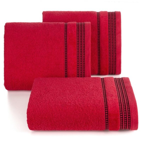 Ręcznik z ozdobną, welurową bordiurą w pasy szerokość: 70 cm, długość: 140 cm, kolor: czerwony, Gramatura: 500 GSM, Skład: 100% bawełna; część ozdobna: 100% poliester