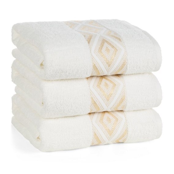 Ręcznik z ozdobną welurową bordiurą przetykaną błyszczącą nicią szerokość: 50 cm, długość: 90 cm, kolor: kremowy, Gramatura: 500 GSM, Skład: 96% bawełna, 4% poliester