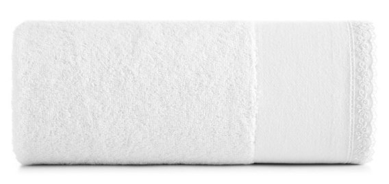 Piękny ręcznik kąpielowy z miękkiej i chłonnej bawełny frotte zdobiony na bordiurze aplikacją w formie serduszek wypełnionych różyczkami. Doskonały na prezent. szerokość: 70 cm, długość: 140 cm, kolor: biały, Gramatura: 500 GSM, Skład: 100% bawełna; część ozdobna: 100% poliester