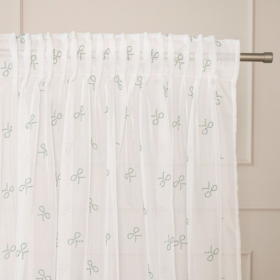 RIBBON Firana gotowa na woalu w diamentowe kokardki, na taśmie, z ołowianką, szerokość 140 x wysokość 250cm, kolor 003 biały z z