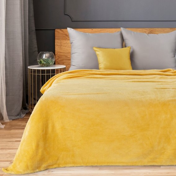 Koc flano bardzo miękki w dotyku szerokość: 130 cm, długość: 170 cm, kolor: musztardowy, Gramatura: 250 GSM GSM, Skład: 100% poliester