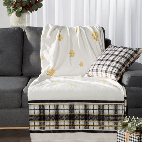 Koc z drukowanym wzorem świątecznym kolor: biały, Gramatura: 210 GSM GSM, Skład: 100% poliester