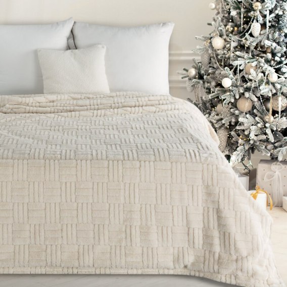Świąteczny koc dekoracyjny szerokość: 150 cm, długość: 200 cm, kolor: kremowy, Gramatura: 380 GSM, Skład: 100% poliester