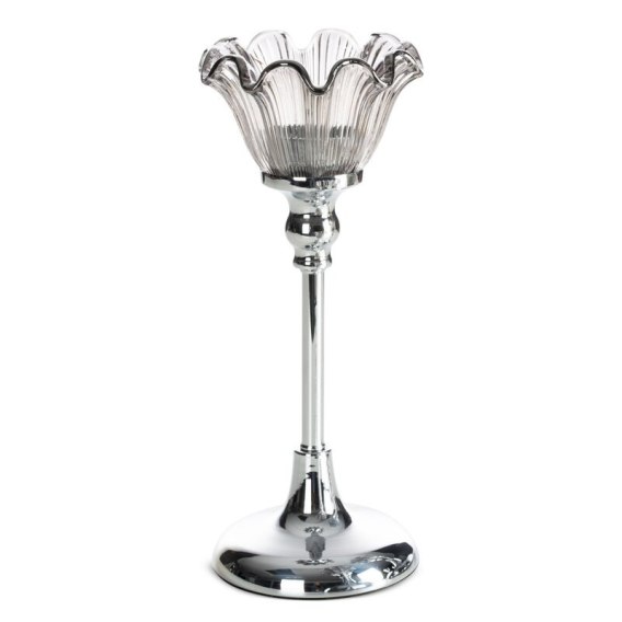 Świecznik dekoracyjny szerokość: O 11 cm, długość: 27 cm, kolor: srebrny, Skład: 60% metal, 40% szkło