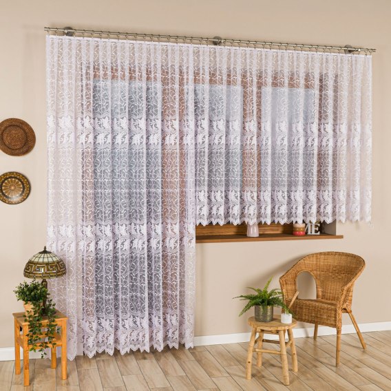 TEOFILA Firanka żakardowa odpasowana na prosto, szerokość 200 x wysokość 250cm, kolor 001 biały 049348/FOP/001/000250/1