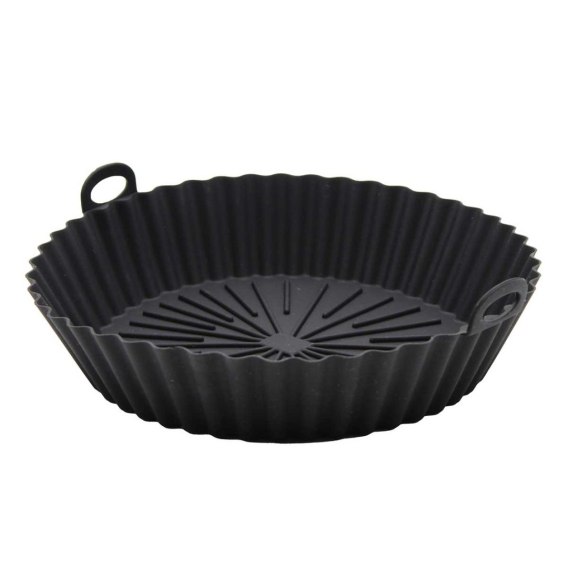 Wielorazowy wkład do frytkownicy Air Fryer. Wykonany z silikonu w kolorze czarnym. Użyty silikon jest nieprzywierający. Odporny na wysokie temperatury.