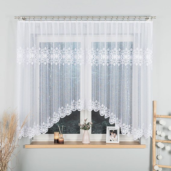 ŻANETA Firanka żakardowa odpasowana, szerokość 350 x wysokość 155cm, kolor 001 biały 181043/FOL/001/000151/1