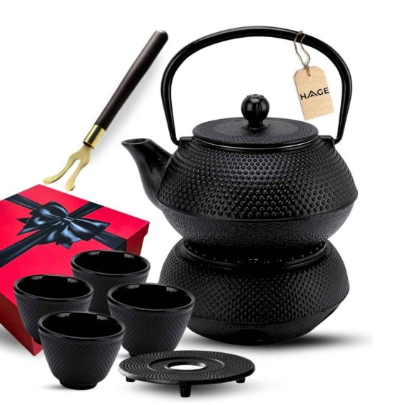ZAPARZACZ ŻELIWNY DZBANEK CZARNY 900ml Z PODGRZEWACZEM i FILIŻANKAMI PREZENT