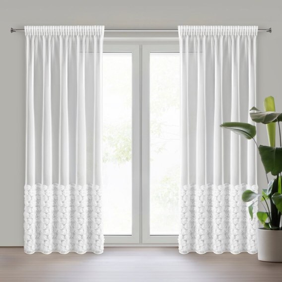 ZASŁONA GOTOWA ROSES 2 NA TAŚMIE 140 X 270 CM BIAŁY