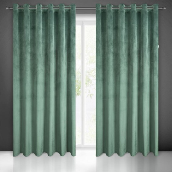 Zasłona z miękkiego welwetu Melanie 215x250 cm kolor zielony przelotki