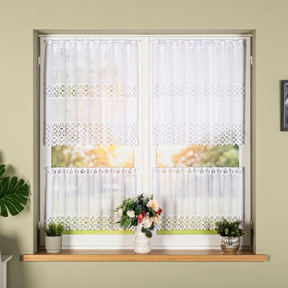 Zazdrostka żakardowa ze wzorem na samym dole, wysokość 75cm, kolor 001 biały 018869/000/001/000075/1
