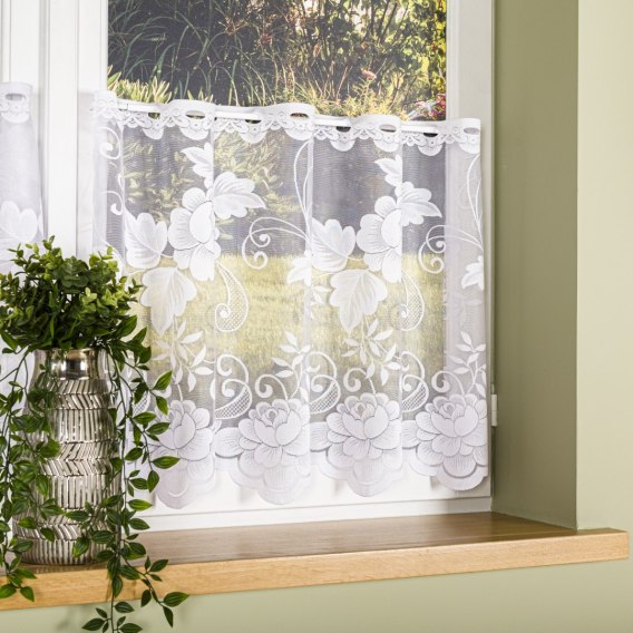 Zazdrostka żakardowa ze wzorem po całości, wysokość 60cm, kolor 001 biały 023006/000/001/000060/1