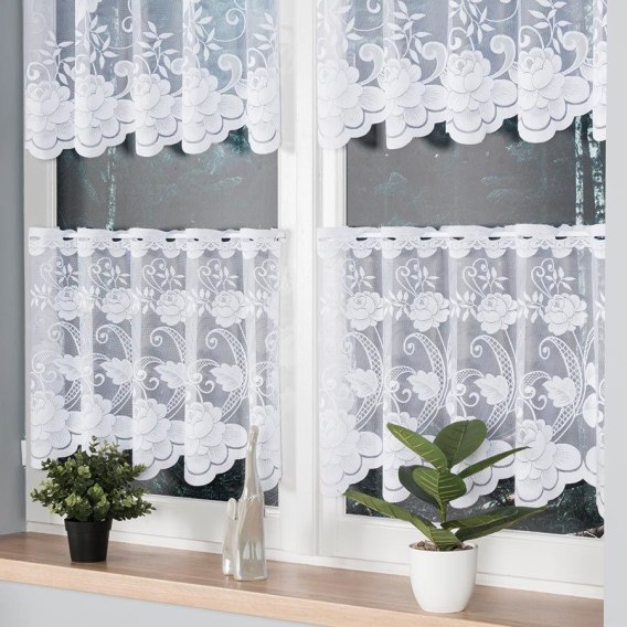 Zazdrostka żakardowa ze wzorem po całości, wysokość 70cm, kolor 001 biały 023006/000/001/000070/1